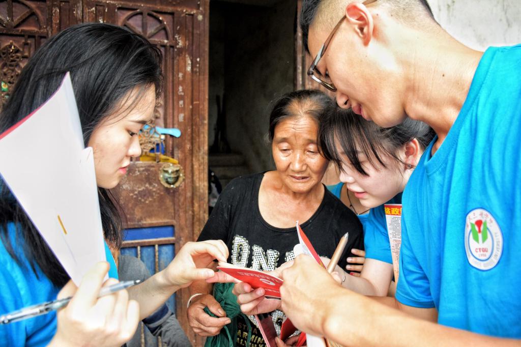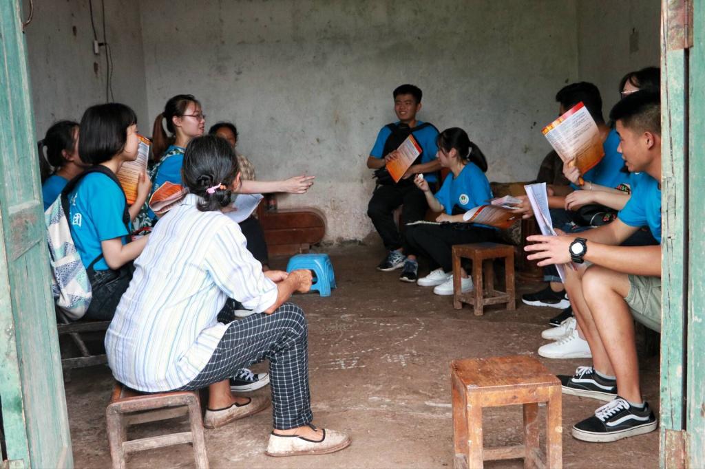 2018年7月9日,太阳成集团tyc539暑期“三下乡”彩虹人生服务团分别对赶场社区、老雄村、宏福村、官坝村进行“精准扶贫”政策知识宣讲。在两名村干部的带领下,队员们深入走访了贫困农户,向村民们普及精准扶贫政策。