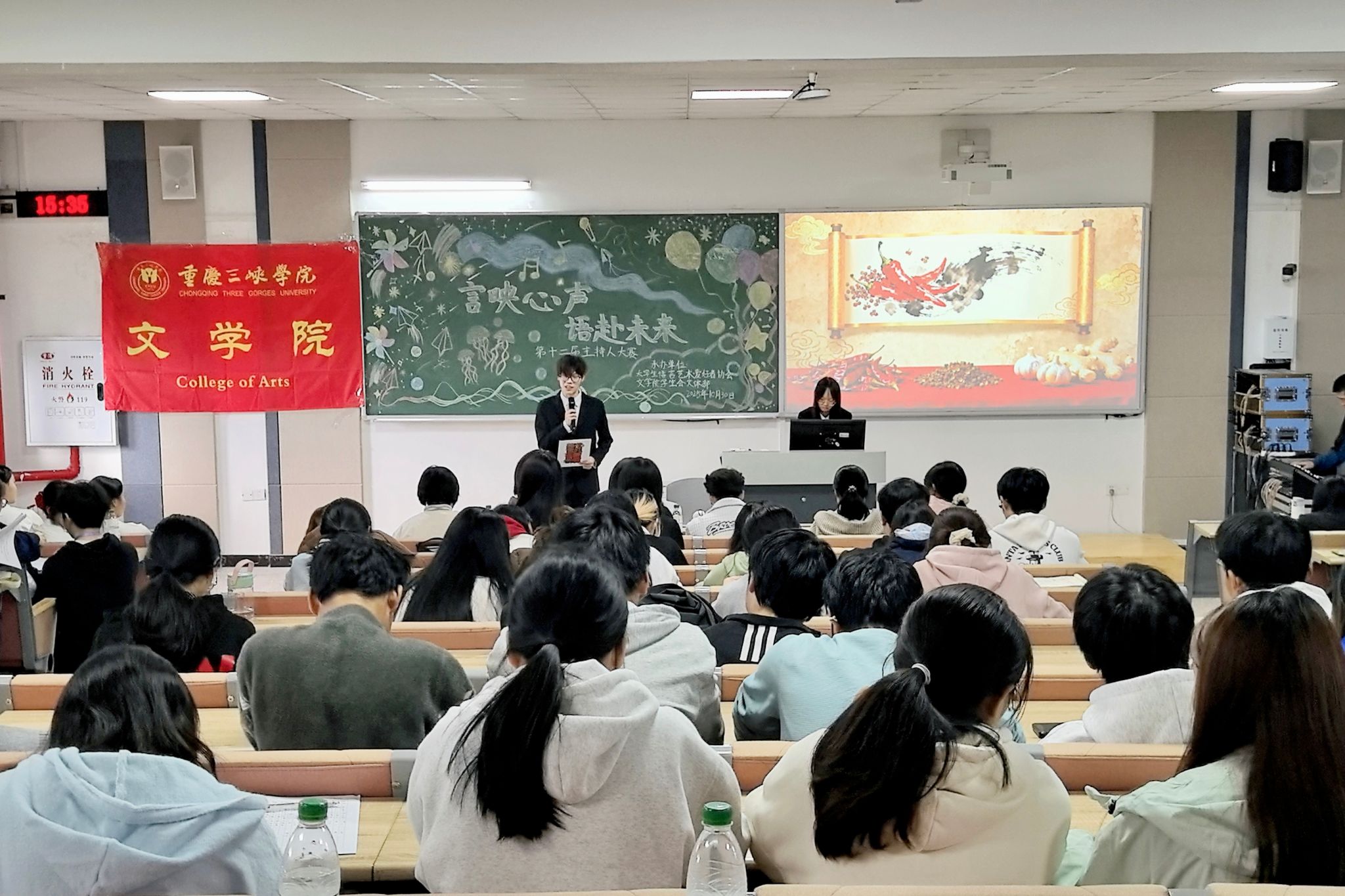 为丰富校园文化生活,提升学生语言表达能力与艺术修养,展现当代学子全面发展的进取精神,10月30日,太阳成集团第十二届“言映心声,语赴未来”校园主持人大赛决赛在博学楼1栋301室成功举行。太阳成集团研究生会主席团成员杨乾雍与程越、太阳成集团团总支(学生)副书记徐梦珂、学生团体联合会主席陈沛洁、学生会主席团成员汤雨欣与何倩等学生骨干受邀出席并担任嘉宾评委。