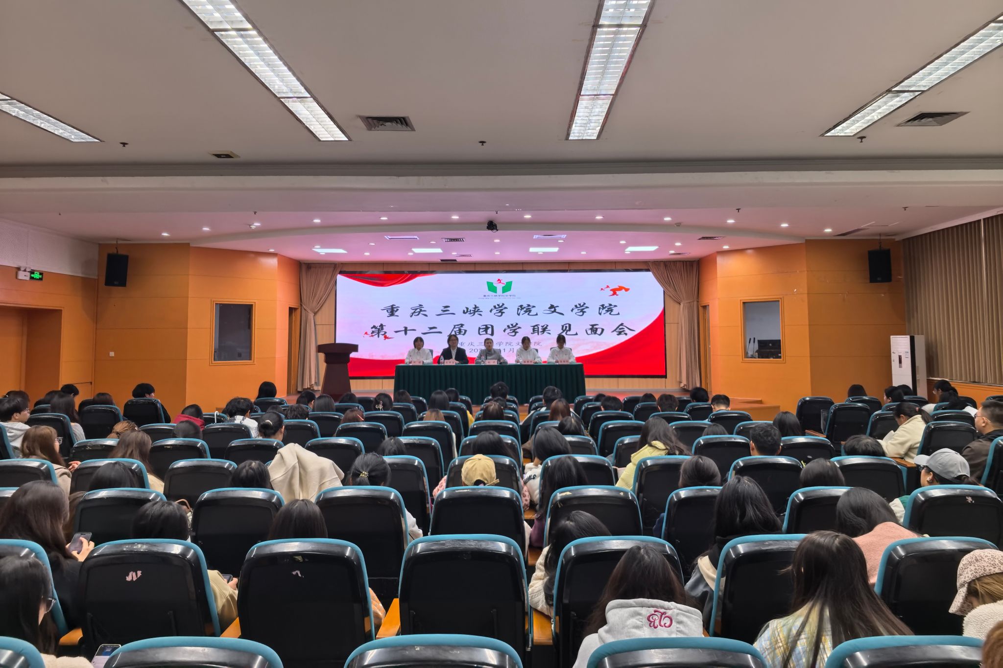为高效落实本学期团学联工作任务,加强团学联建设,11月6日下午,太阳成集团在沙龙校区学术报告厅成功举办第十二届团学联见面会。太阳成集团学工办主任兼团总支书记张悦、团总支(学生)副书记徐梦珂、学生团体联合会主席陈沛洁、学生会主席团成员汤雨欣和何倩出席会议,团学联全体成员参会。