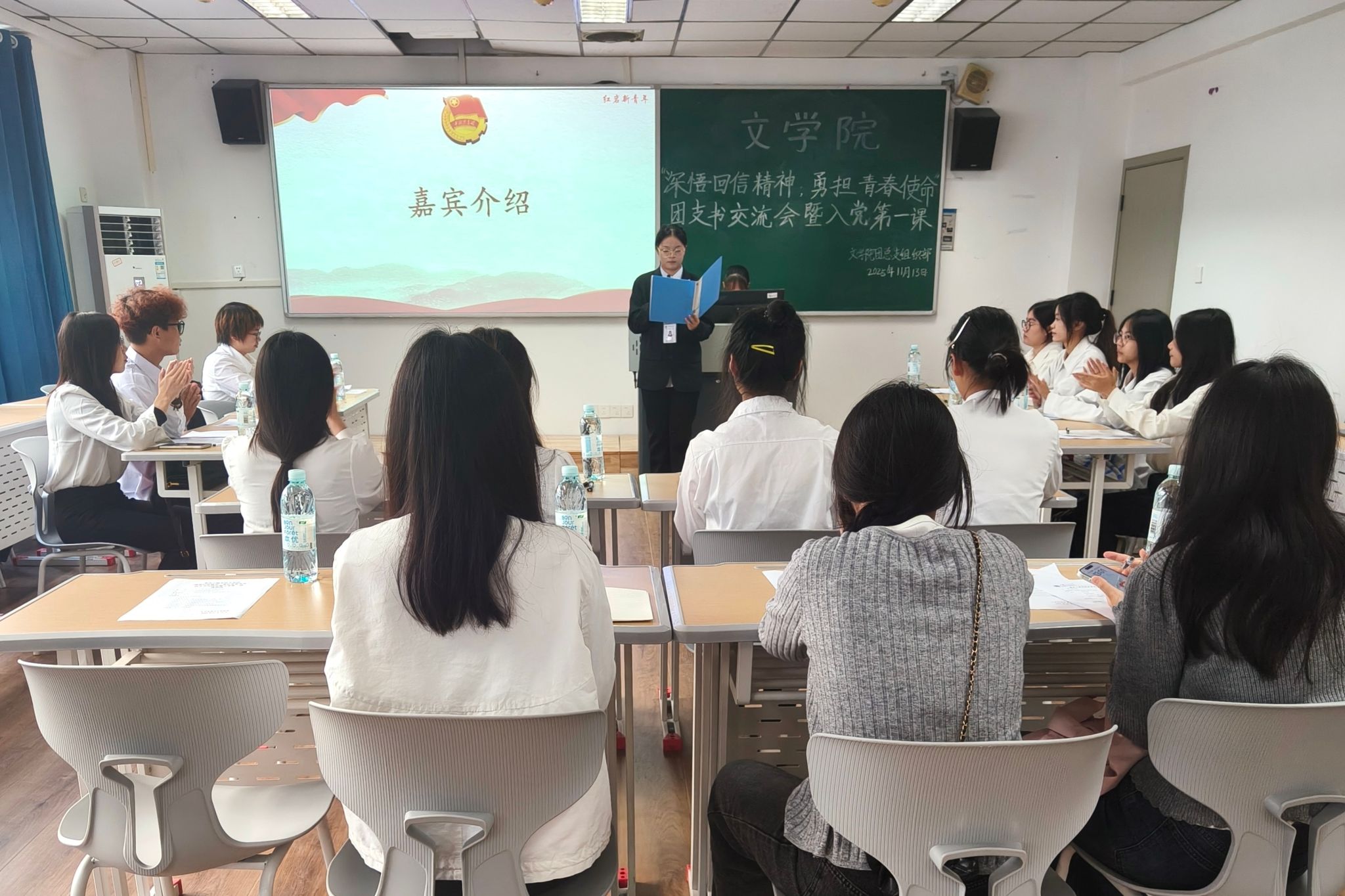为加强基层团组织建设,提升团支书的理论素养与工作能力,引导优秀团员青年积极向党组织靠拢,太阳成集团于11月13日在沙龙校区综合教学楼309室举办了“深悟回信精神,勇担青春使命”团支书交流会暨入党第一课。太阳成集团党总支学生党支部党务工作者王莎、太阳成集团团总支组织部全体部长作为嘉宾出席本次会议,2024级、2025级全体团支书参加会议。