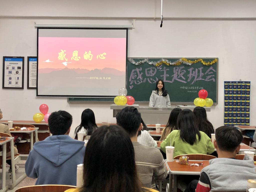为促进大学生了解感恩的重要性和必要性,增强感恩意识,激发感恩之情,我院2018级汉语言文学2班于11月10日在慎思楼5栋421开展“感恩的心”主题班会。