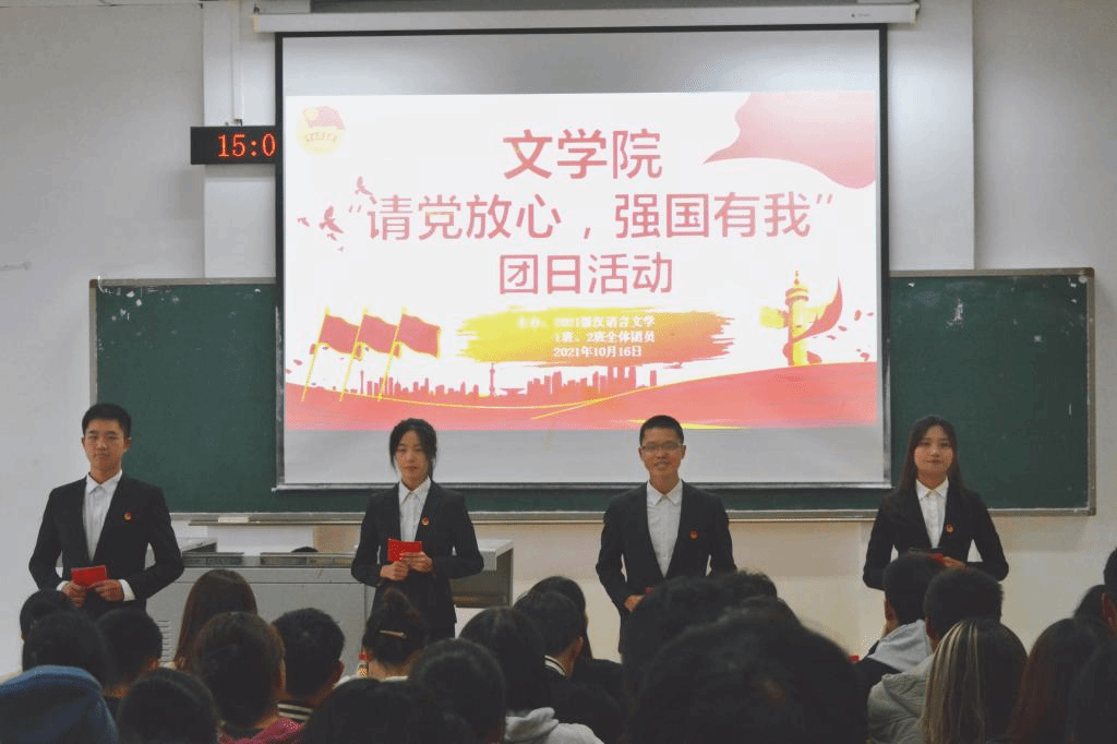 为扎实推进党史学习教育,不断激发青年同志学党史、悟思想、办实事、开新局的热情和干劲,我院2021级汉文一、二班于10月16日于明辨楼2栋202室联合开展了以“请党放心,强国有我”为主题的团日活动。