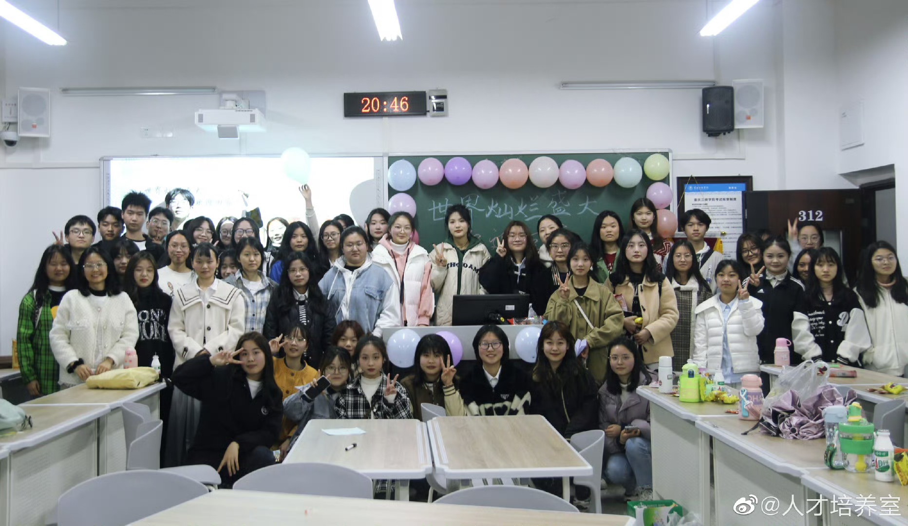 美育方面,该班创建了班级微博,记录班级举办的日常活动。同学们各有特长,许多同学热爱摄影、书法、绘画等。7名同学在全国大学生文学作品大赛中获奖,1名同学在心理情景剧中获奖。该班同学积极参与教育部组织的“我心中的思政课”拍摄,其中,8人参与微电影《向未来》的拍摄,5人参与《绚花灿烂》拍摄。