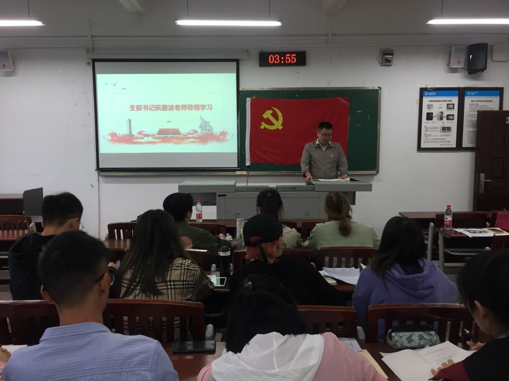 在会议上,支部书记阮碧波老师带领大家一起学习了“牢记初心使命,推进自我革新”的讲话精神,要求每一位学生都要认真思考“如何永葆先进性和纯洁性、永葆青春活力,如何永远得到人民拥护和支持,如何实现长期执政”的问题,指出党员同志应该增强“四个意识”、坚定“四个自信”、做到“两个维护”,围绕守初心、担使命,找差距、抓落实的总要求发扬自我革命精神。阮碧波老师还强调,学生党员应具备政治敏锐性,跟紧党和国家前进的步伐,在日常生活中注意自己的言行举止,时时刻刻发挥先锋模范作用。