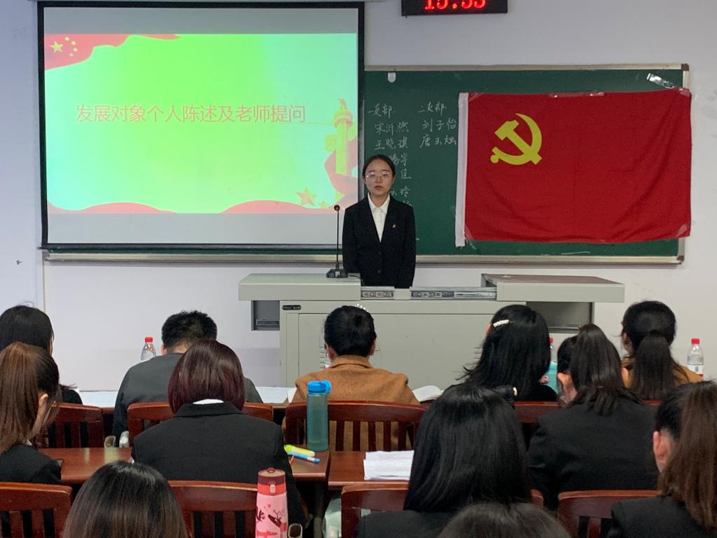 首先,10名发展对象依次做自我介绍并对个人入党动机进行了阐述,在随后的提问环节中,评委老师们针对党的性质和宗旨、党的根本路线和指导思想、申请入党的条件、“两个维护”、“四个意识”、“四个自信”等党的基本理论知识进行提问。同时,老师们还紧扣时事热点,考察了“不忘初心、牢记使命”主题教育的意义,并让发展对象就“如何切实做到服务身边群众”等问题进行了回答。