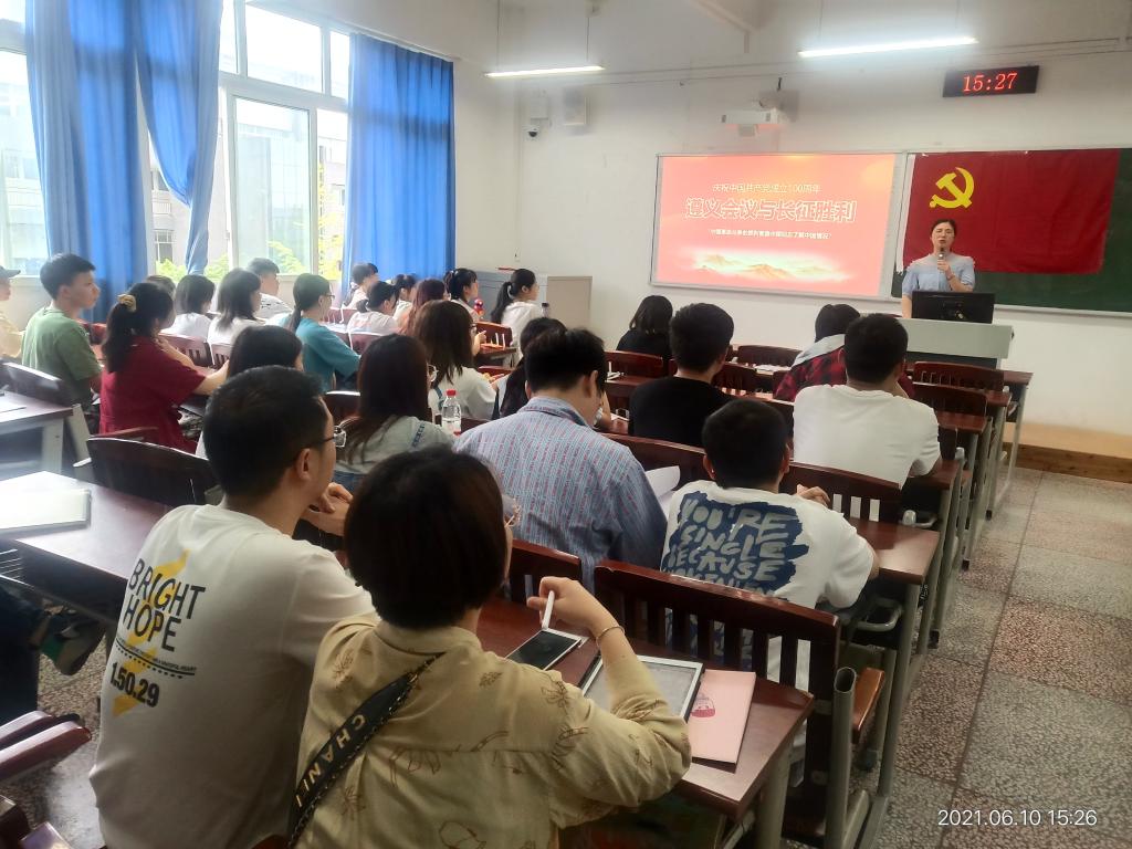 为丰富学生党史教育学习内容,2021年6月10日下午,我院党总支学生第一党支部书记王陈超于明辨楼1栋412开展了题为“遵义会议与长征胜利”的主题党课,深刻全面地讲述了遵义会议与长征的过程以及关系意义。我院部分正式党员,预备党员参与。