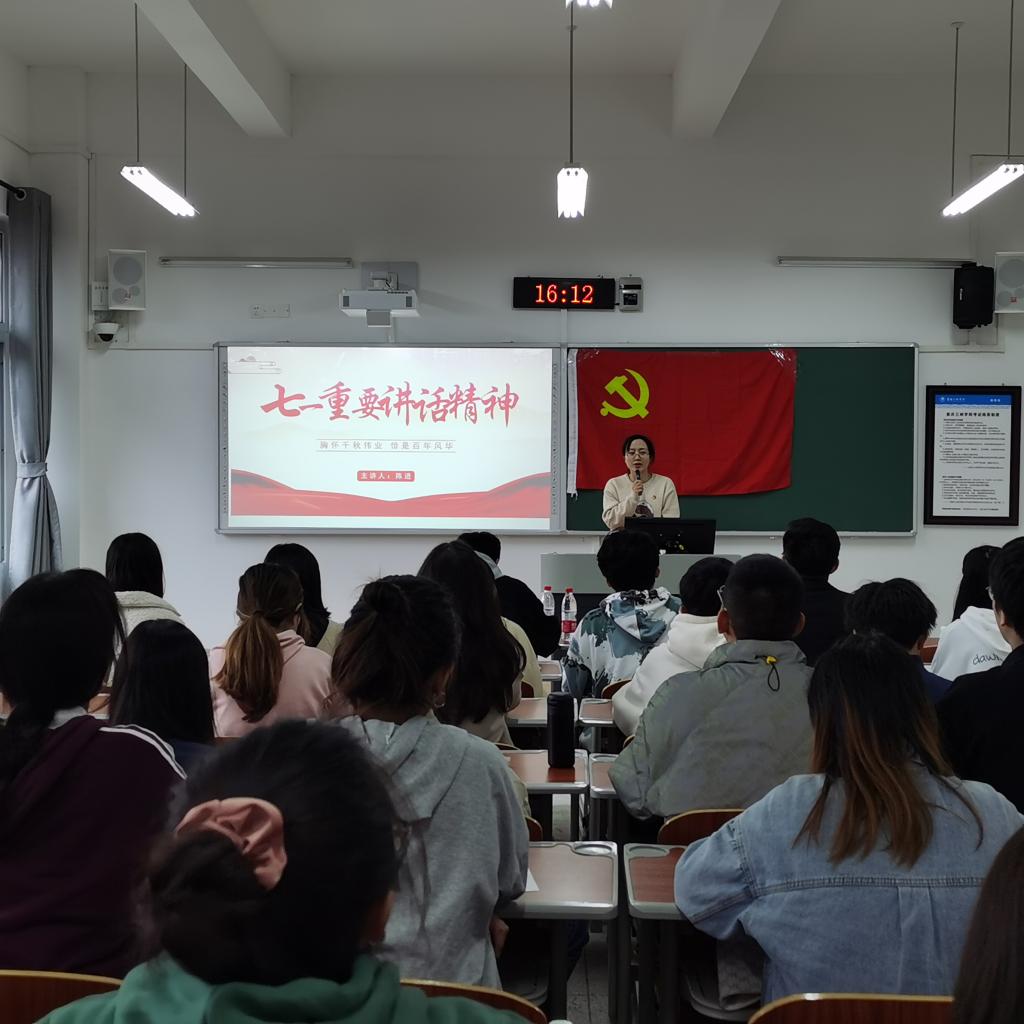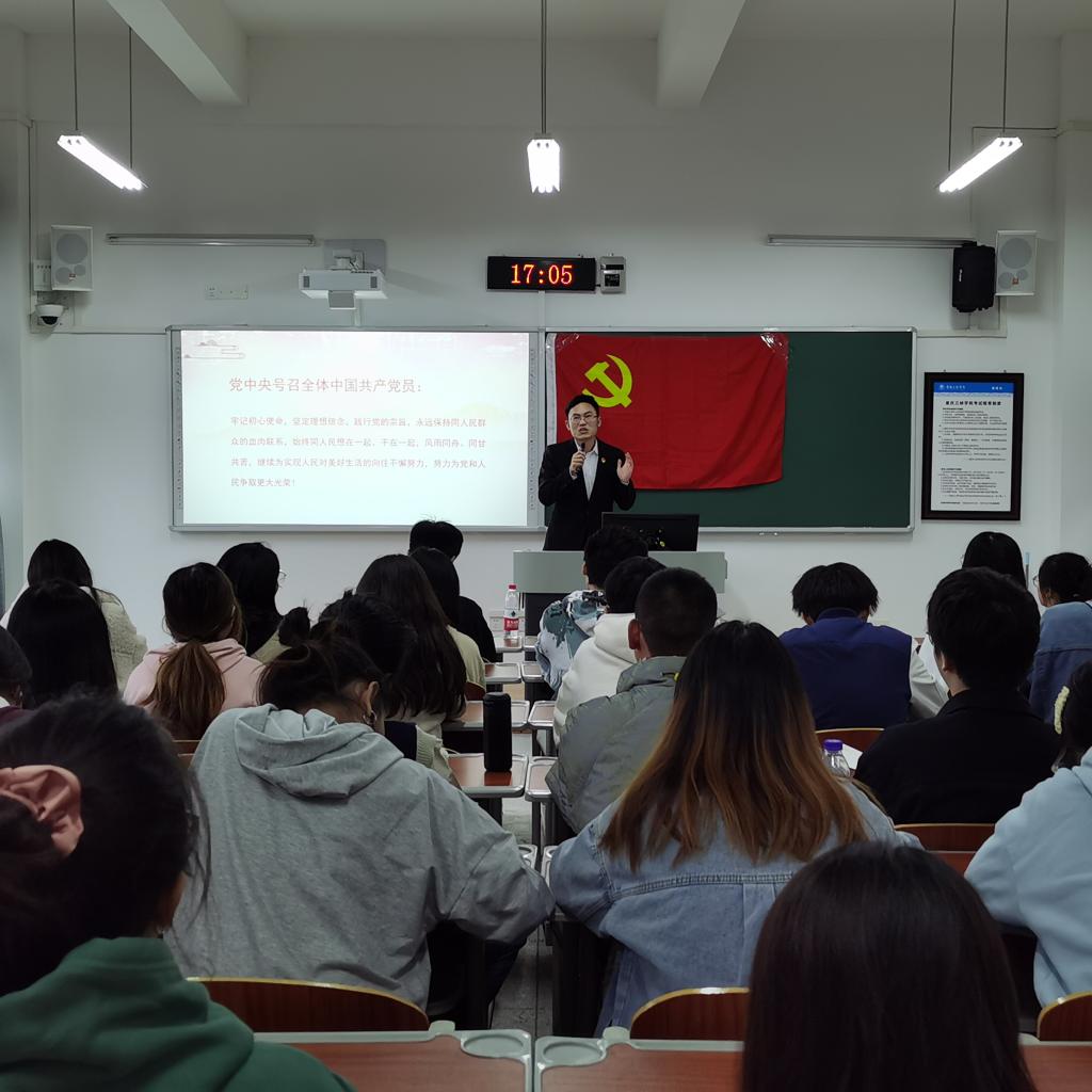 10月21日下午,太阳成集团党总支学生第二党支部于博学楼2栋301举行“胸怀千秋伟业,恰是百年风华”学习“七一”讲话专题党课。太阳成集团党总支学生第二党支部书记陈进担任主讲。