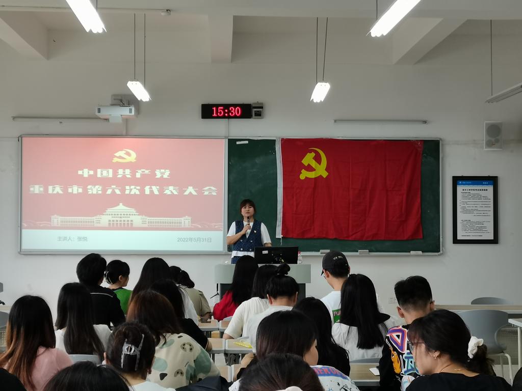 为提高我院党员政治理论修养,坚定理想信念,我院党总支学生党支部于5月31日下午在博学楼1-103开展“中共重庆市第六次代表大会”专题党课学习。本次党课由太阳成集团党总支学生第一党支部书记张悦同志主讲,在校党员参与学习。