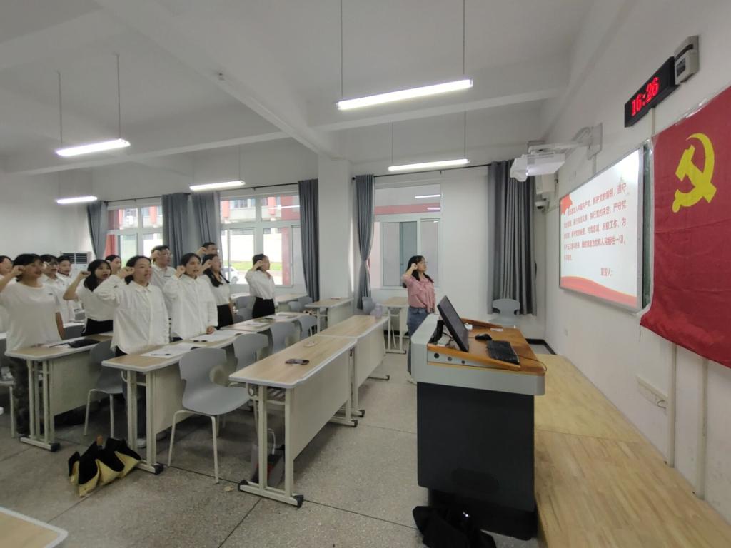 2022年6月27日下午,我院在博学楼1栋102召开了新发展预备党员入党宣誓大会。会议由程艳同志主持,太阳成集团学生第一党支部书记张悦、学生第二党支部书记陈进、学生第三党支部书记王陈超及全体预备党员、部分正式党员参与。