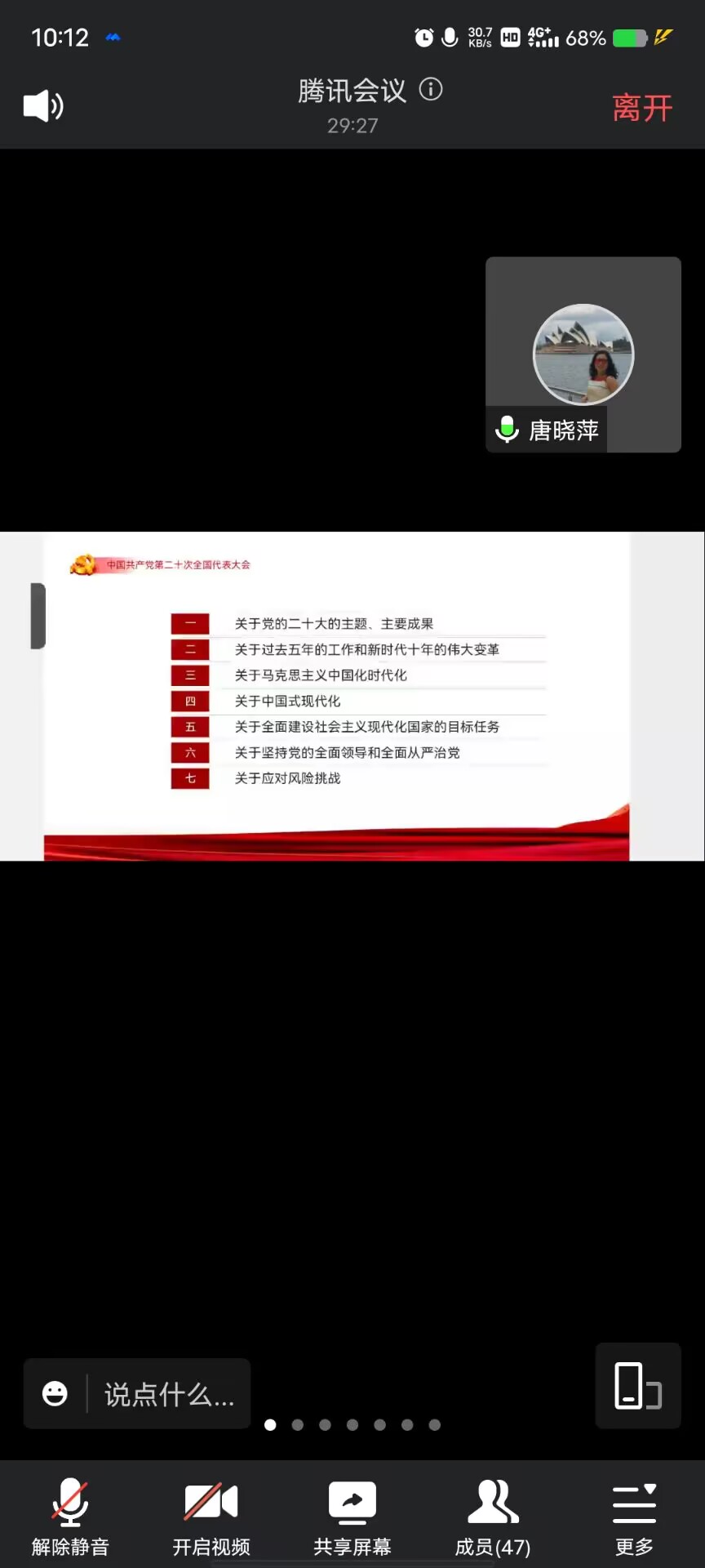 会上,主要围绕党的二十大主题、主要成果、过去五年的工作和新时代十年的伟大变革、马克思主义中国化时代化、中国式现代化、全面建设社会主义现代化国家的目标任务、坚持党的全面领导和全面从严治党、应对风险挑战七个方面展开,对党的二十大作了全面系统深入的宣讲解读和阐释,并勉励同学们要以党的二十大精神为指引,更加紧密地团结在以习近平同志为核心的党中央周围,牢记空谈误国、实干兴邦,坚定信心、同心同德,埋头苦干、奋勇向前,立志做有理想、敢担当、能吃苦、肯奋斗的新时代好青年,为学校高质量发展贡献力量。