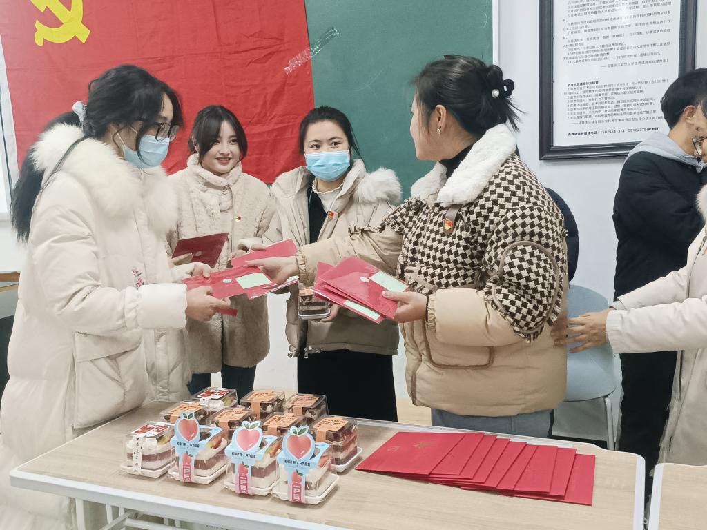 在活动中,支部书记们为过“政治生日”的每一位党员都准备了亲笔写的“政治生日”贺卡和精致的蛋糕。礼物虽轻,却传递了党组织对党员同志们的问候与关爱,更饱含着对每名党员的殷殷期望与谆谆嘱托。礼物赠送结束后,张悦表示希望同志们能铭记自己的入党初心,砥砺前行,不负组织和老师们的厚望。党员们表示今后将以更加昂扬的精神状态,踔厉奋发的干事姿态,走好新征程中的每一步。