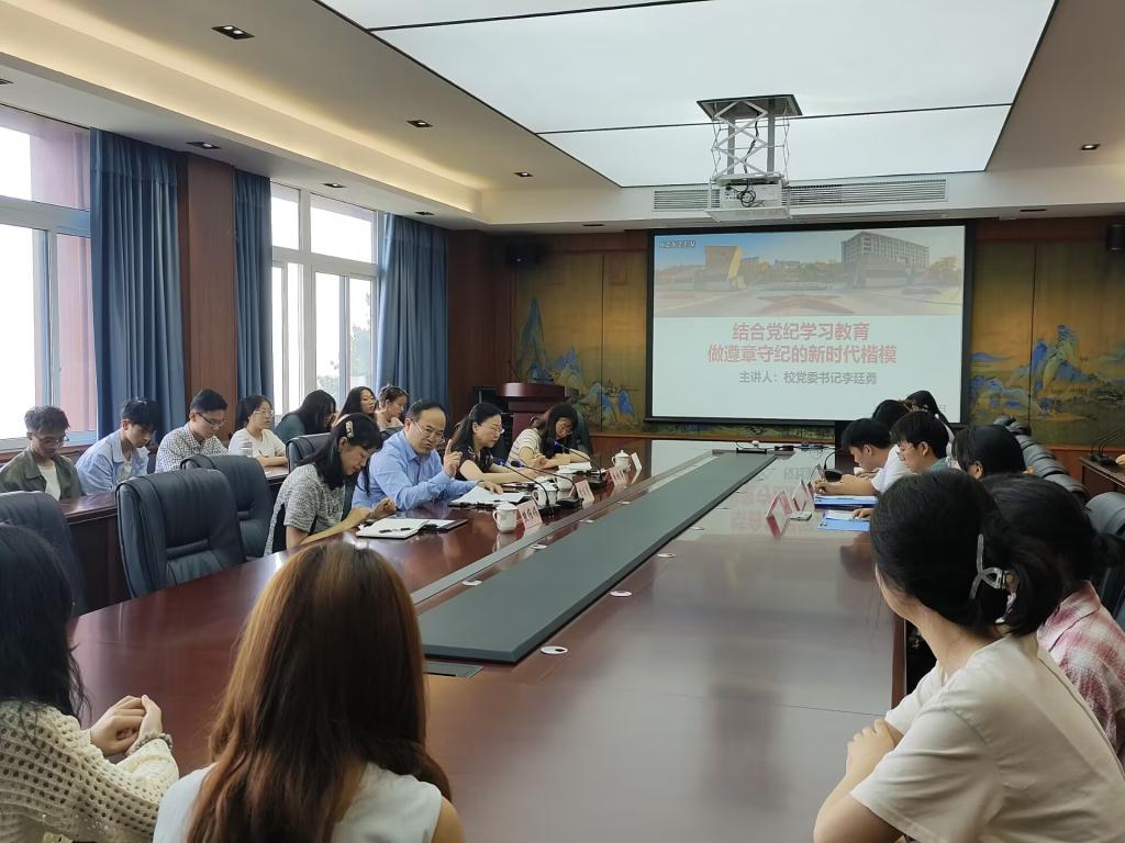 为深入学习贯彻习近平总书记关于党纪学习教育的重要讲话精神,促进学生党团员自我净化、自我完善、自我革新、自我能力提高,引导学生党团员树牢责任意识、底线意识、纪律意识。6月12日上午,校党委书记李廷勇以“结合党纪学习教育 做遵章守纪的新时代楷模”为题,在博学楼3栋404会议室为我院优秀党团员学生代表开展党纪学习教育。院党总支书记唐晓萍、2022级辅导员熊维娟、2020级辅导员夏赛岚全程参会。