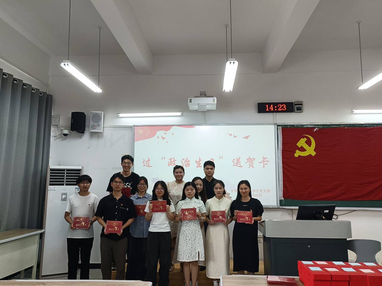 活动伊始,学生党支部为过“政治生日”的党员同志分发了精心制作的“政治生日”贺卡。这份礼物虽轻,却承载了党组织对每位党员的深深祝福和殷切的希望。