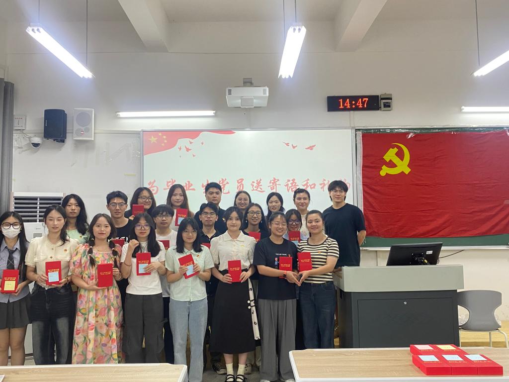 随后,活动的另一重要环节是为毕业生党员送祝福视频和毕业礼物。党支部为毕业生党员准备了毕业祝福视频和精心挑选的书签与钢笔。这份礼物不仅是对他们大学期间辛勤付出的肯定,更是对他们未来职业生涯的美好祝愿。