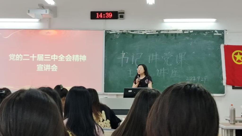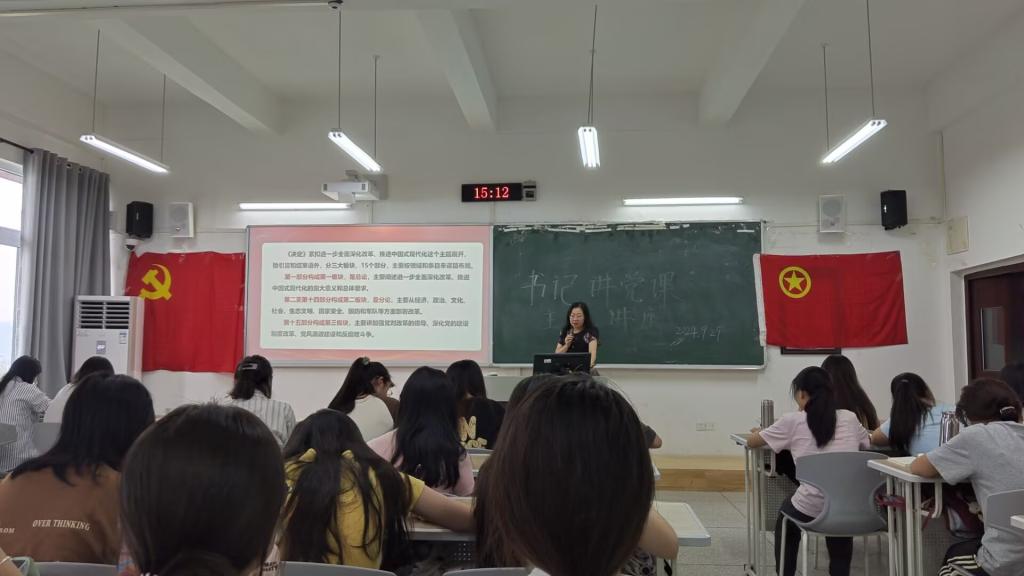 9月29日下午,我院于博学楼1栋103教室举办了“书记讲党课”暨领导干部联系班级活动,党课由学院党总支书记唐晓萍主讲,2023级汉语言文学(师范)1班全体学生参与。
