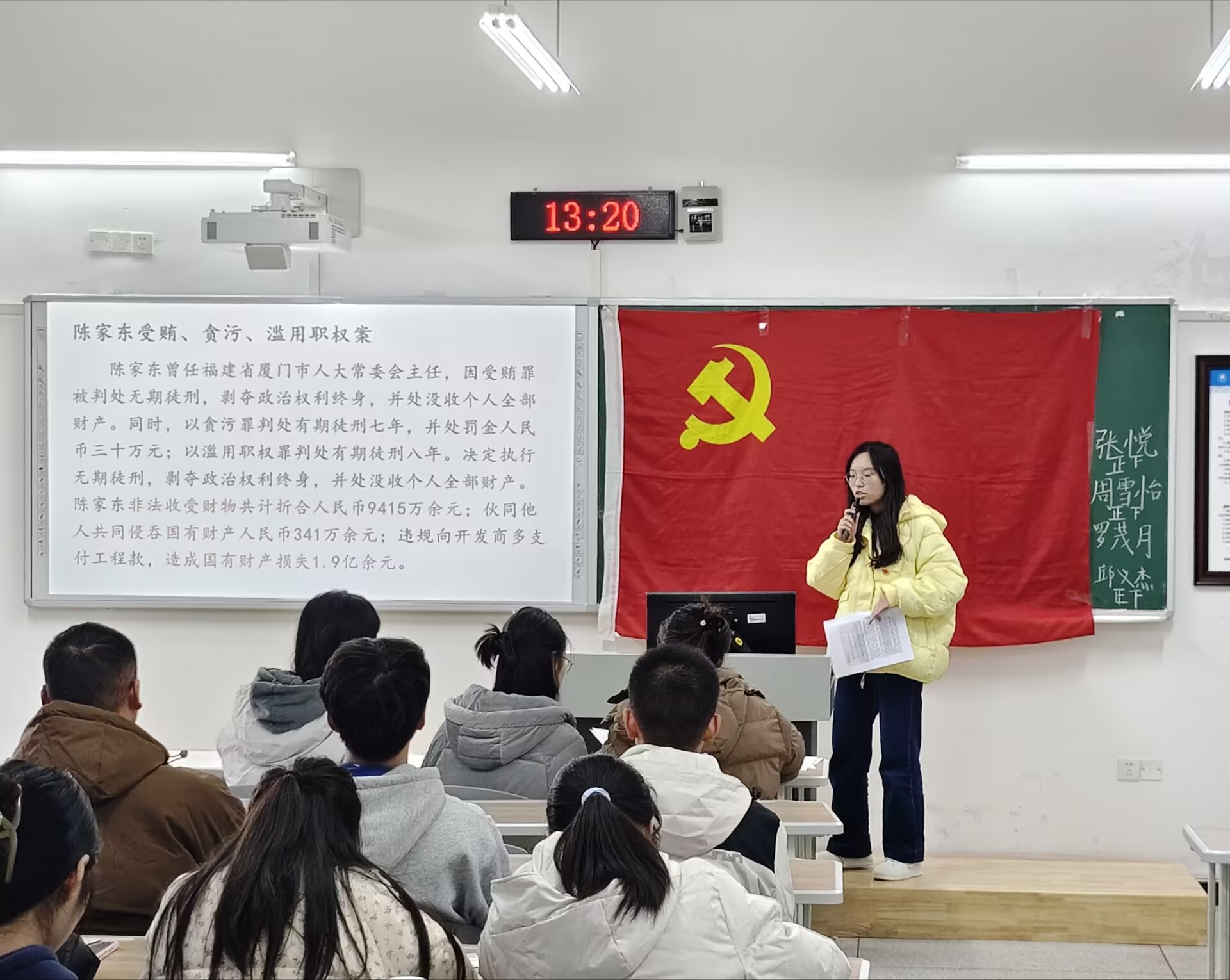 会上,党员代表罗茂月同志和朱启会同志进行领学。罗茂月通过剖析陈家东受贿贪污案反面案例,号召大家从青年时期就开始培养廉洁自律的意识,筑牢思想防线。朱启会则通过思想建设、意志磨练、自制力培养三方面分别阐述了作为学生党员培养廉洁意识的方式方法,并鼓励同志们将廉洁精神融入到日常生活实践中。